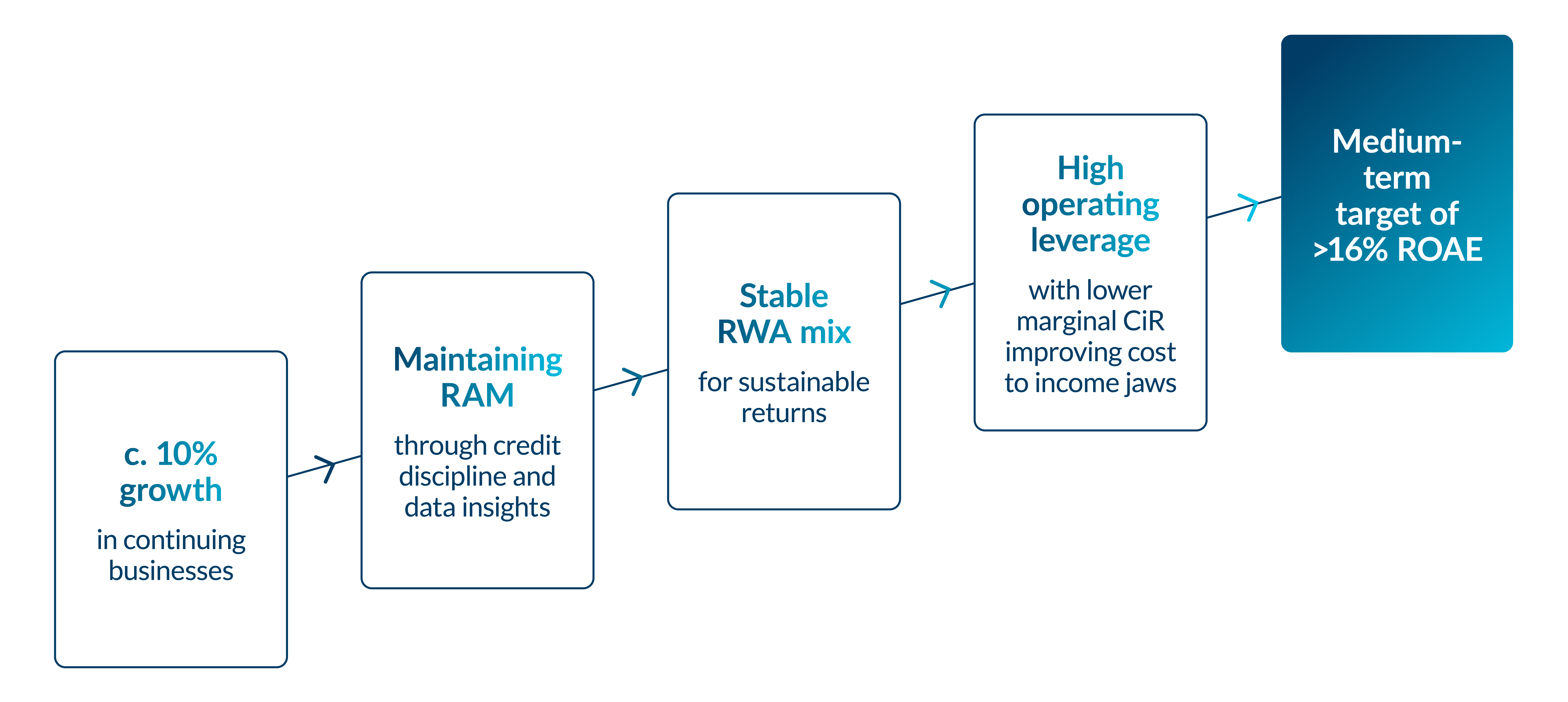 We are on trajectory to deliver above 16% ROAE driven by c.10% annualised balance sheet growth.
